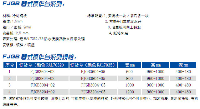 FJGB琴式操作臺(tái)系列:材料:冷軋鋼板